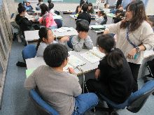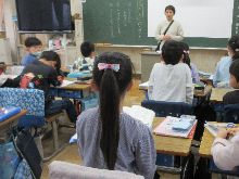 5年生の家庭科で、「お金の使い方」について学習していました。普段の生活でかかるお金について、私が思った以上に子ども達は知っているのだなあと感心しました。家庭での会話や交流が、知識となって子ども達に蓄えられているのでしょう。この学習を通して、賢い消費者を目指しましょう。道徳の時間に意見交流をしている場面で、いろいろな友だちのところへ行ったり先生と話したりしていました。物事の視野や考えを広げたり深めたりする際には、ネットでは得られないヒントが得られるのが「人との交流」です。人と関わることの楽しさやすばらしさを感じ取れる学習活動を大切にしていきたいです。2年生が、数の仕組みをカードを並べながら考えて表現していました。同じことをタブレットでもできますが、「モノを操作」することで得られる感覚は、実感を伴う有効な活動ですね。楽しく学習する子ども達の笑顔が物語っています。3年生の図工で、家から持ってきた「布」を使って作品作りに取り組みます。タオルや手袋、裾上げしたズボンの残りなど、それぞれの特徴を活かして制作していきます。出来上がりが楽しみです。また、GSでは「I can play ○○」と伝え合い、友だちの得意なことを知り盛り上がっていました。すてきな笑顔が飛び交っていました。