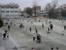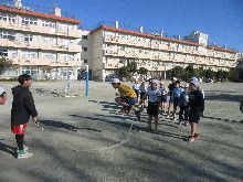そんな中、5年生が長縄の連続飛びで「へイッ!へイッ!へイッ!…」と威勢のいい掛け声をかけながら、元気に練習していました。2年生も寒さに負けず、ドッジボール型ゲームを楽しんでいました。見るたびに、投げ方も取り方も上手になっているのが素晴らしいですね。1年生は「冬探し」で校庭を探検していました。正門横の池の水が凍っているのを見つけて教えてくれました。正真正銘の冬を見つけました。4年生が作文で先生の添削を受けていました。列に並んで順番を待つ姿は、タブレットが入ってきてからめっきり少なくなりましたが、ドキドキしながら待っている姿や直接先生に助言をもらって真剣に取り組む表情には、価値の高い活動でありました。1年生は国語で学んだ「身ぶり」についてまとめの学習をしていました。どんな時に使う身ぶりなのか、自分が選んだ身ぶりをジェスチャーと言葉で示しクイズ形式で発表していました。発表する子はドキドキで、答える子たちは真剣な様子でした。業間休みになると、音楽室から楽器の音が聞こえてきました。行ってみると、金管バンドの子たちが自主練?をしていました。6年生を中心にチームワークのよさを感じさせられました。5年生の図工では、ビー玉の通り道を作っていました。丈夫でスムーズにビー玉が転がるようにレール(通路)のつくり方やつなぎ方を工夫して楽しく作業していました。2年生が「音楽に合わせてペアで動く!」活動をしていました。リズムやテンポに合わせて、手をつないだ二人がクルクル回る姿は楽しそうでした。