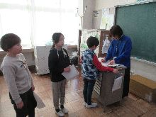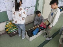 今日はお昼の放送で、給食委員会委員長さんと栄養士のお話を放送しました。特に委員長さんの「にんじん」についての話は、クイズも交えてみんなに分かりやすく、自分の思いのこもったとても良いお話でした。各学年ごとの取組も、『給食』や『調理員さん』への思いや感謝が様々な形で表現されていました。文蔵っ子たちの素直な気持ちが表現されていて、見ていてほっこりしました。4年生がリコーダーの練習をしていましたが、姿勢のよさが素晴らしいです。背筋が伸びていて真剣に取り組む様子が伝わってきました。先生の指導で「だんご三兄弟みたいに...」という言葉に懐かしさを感じました。ちなみに1999年に発表されましたが、今でも子ども達に通じる名曲なのだと思いました。2年生が算数の活動で、3mの紙テープを持って、校舎の中のいろいろな物の長さをグループで調べていました。この体験活動が、長さの感覚を身に付けるきっかけになるので、いっぱい楽しく図ってほしいと思います。4年生が水の温まり方の実験をしていました。火を使う実験なので、防護メガネをつけて真剣に取り組んでいました。グループ毎に計時や記録、観察など役割分担をしてキビキビ動いていました。6年生の算数は、教科書の最後にある「6年間のまとめ」に自分のペースで取り組んでいます。残りページを見ると、卒業が間近に迫ってきていることを感じさせます。友達同士で確認しながら取り組む姿も微笑ましい限りです。6年間の学びをしっかりまとめていきましょう。3年生が完成した図工の作品をもって、先生に写真を撮ってもらっていました。頑張って作り上げた作品を手に、にっこり微笑む笑顔が素敵でした。